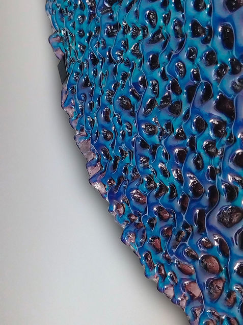 Praca o dynamicznej, reliefowej powierzchni, w której kolor i faktura tworzÄ… spójnÄ… caÅ‚ość. GÅ‚adkie przejÅ›cia od błękitu po głęboki fiolet budujÄ… wrażenie przestrzeni i rytmu. PracujÄ…ce na rzeźbiarskiej powierzchni Å›wiatÅ‚o, podkreÅ›la organiczny charakter struktury. Każda obserwacja ujawnia nowe niuanse formy i barwy.